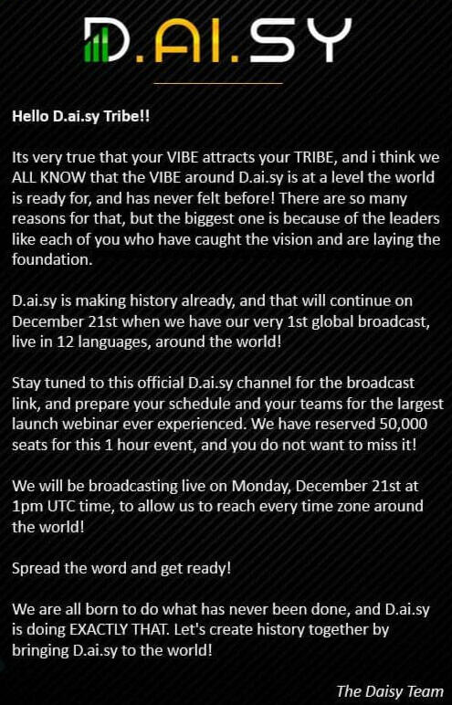 TONIGHT is for MEMBERS, we will update everyone on the amazing momentum and also how to deal with common challenges. See you soon! Www.daisycrowd.com 6am utc time